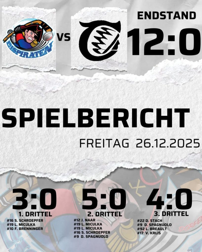 Eispiraten22.12.20256:1 gewinnt der Dorfen gegen die stark dagegenhaltende Mini-Truppe aus WaldkirchenFaires, aber unterhaltsames Duell zwischen Erispiraten und Crocodiles Mit nur 13 Feldspielern plus zwei Torhütern war der ESV Waldkirchen gestern…Weiterlesen →
