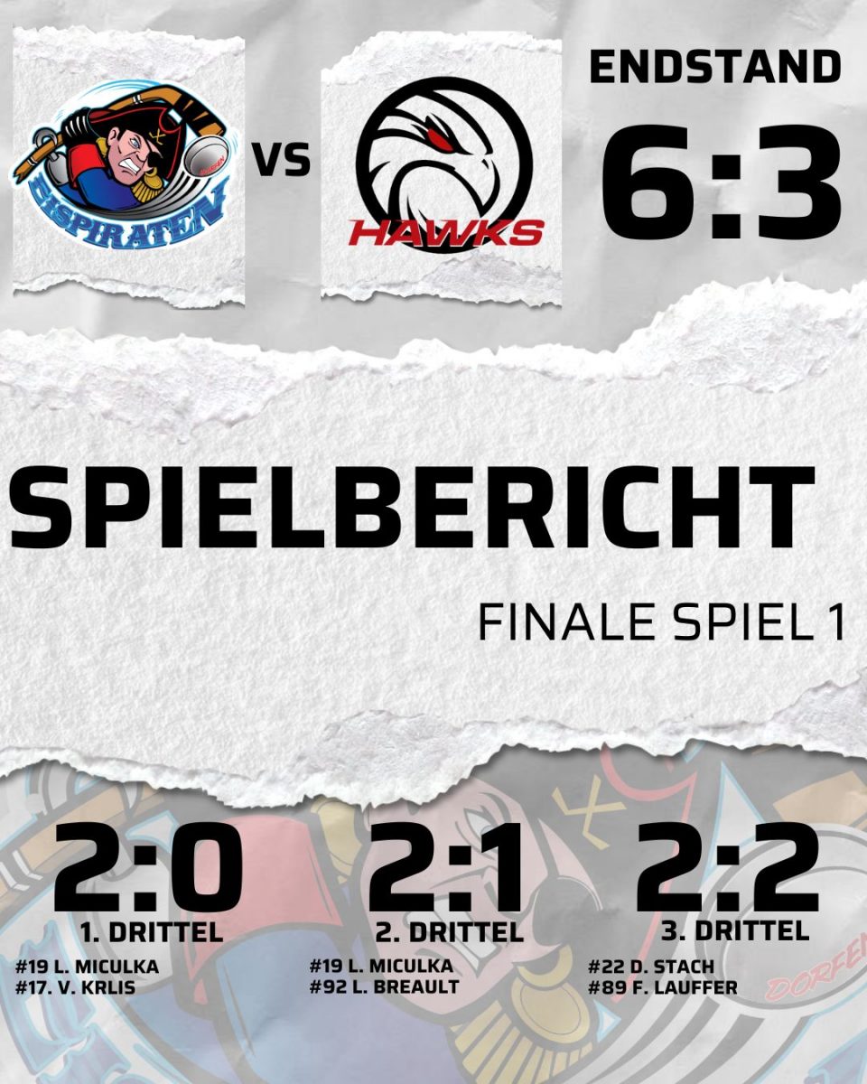 Nach einem hochklassigen Duell der beiden besten Landesligateams und einem 6:3 (2:0, 2:1, 2:2) – Sieg vor rund 600 Zuschauern liegen die Eispiraten in dieser Serie Best-off-5 nun mit 1:0 vorne.