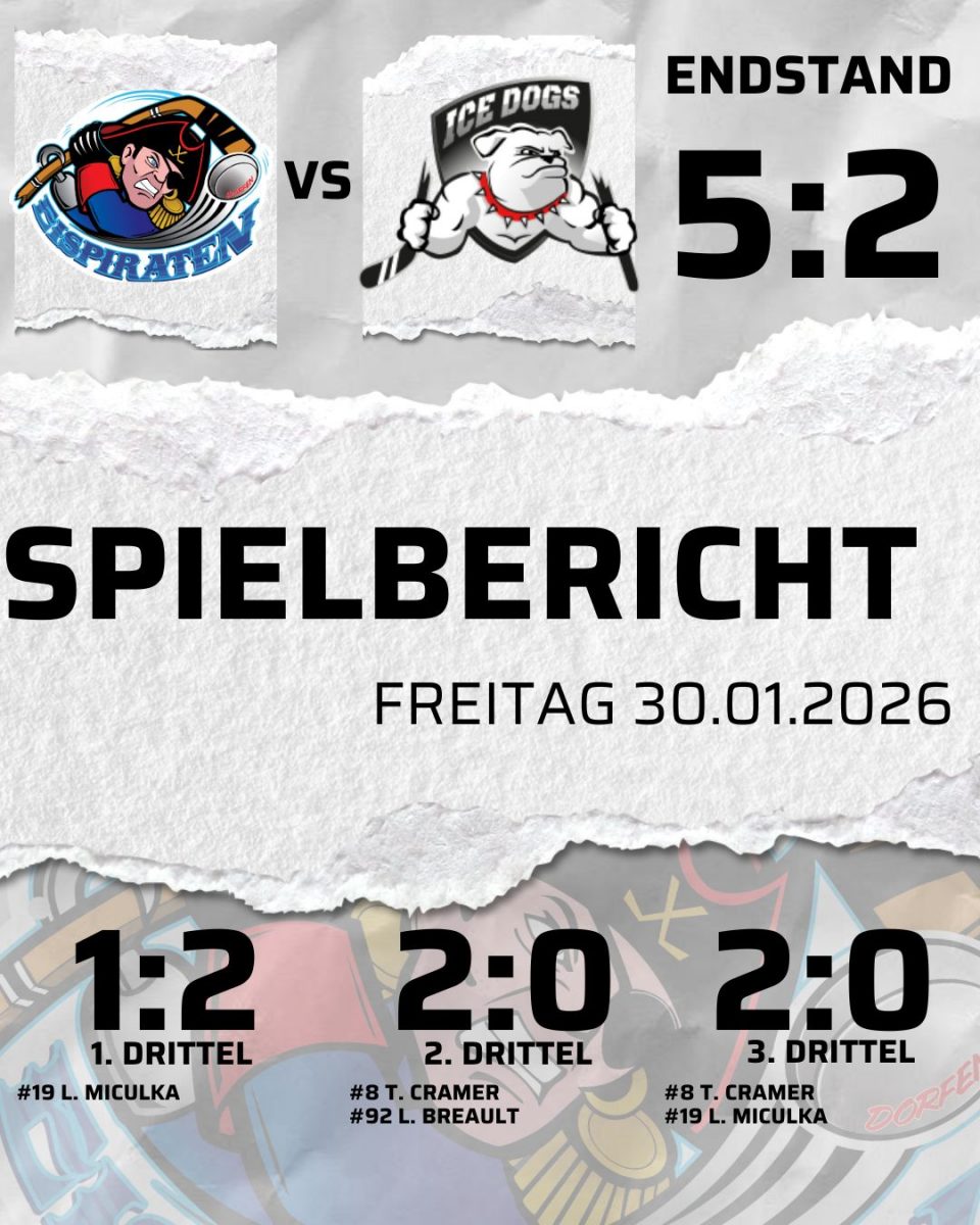 Tolles Eishockey boten der ESC Dorfen und der EV Pegnitz rund 250 Zuschauern am Freitagabend im Dr. Rudolf-Stadion. Im ersten Drittel wurden die Ice Dogs ihren Vorschusslorbeeren gerecht und führten verdient. Mit Hochgeschwindigkeit und traumwandlerischem Kombinationsspiel drehten die Eispiraten die Partie zu einem hochverdienten 5:2 (1:2, 2:0, 2:0) – Sieg.